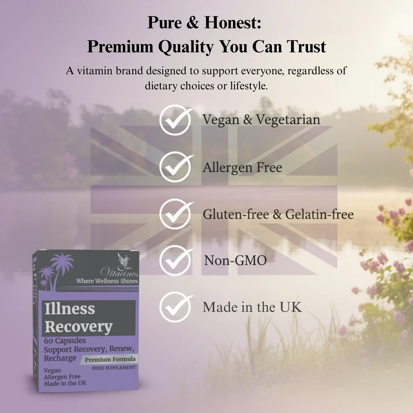 Together, these ingredients provide the body with the nutrients it needs to recover faster, restore energy levels, strengthen immunity, and protect against future illness — helping you bounce back feeling stronger and revitalized.