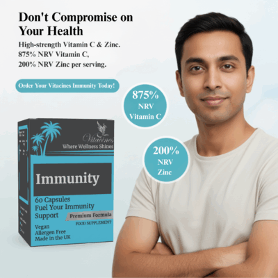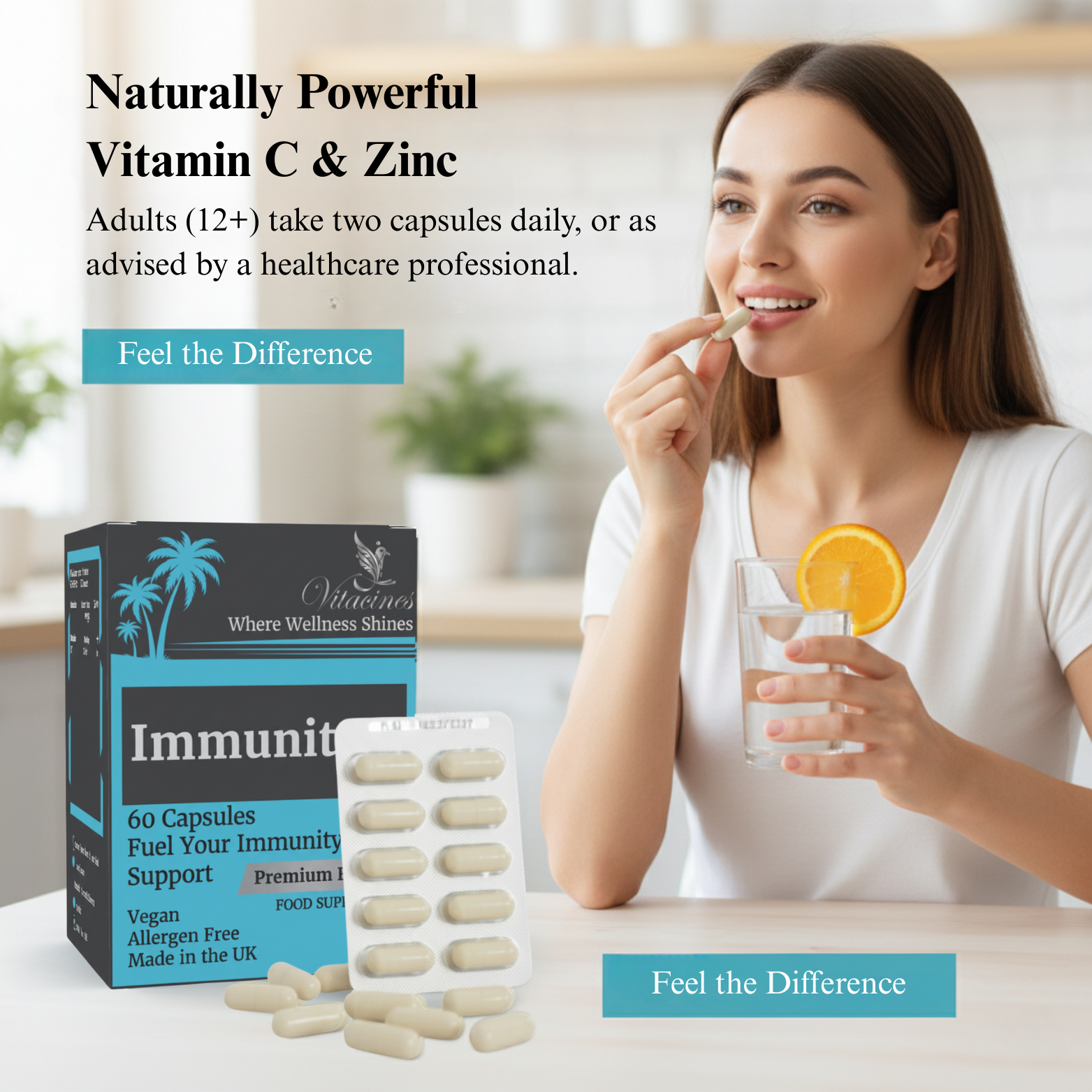 A vitamin C and zinc immunity support formula offers powerful protection to keep your immune system strong and responsive. Vitamin C is a potent antioxidant that helps defend the body against harmful free radicals, supports white blood cell function, and promotes faster healing and recovery from colds or infections. Zinc plays a crucial role in immune cell activity and helps the body fight off viruses and bacteria more effectively.