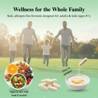 Children (4 to 12 years): Pour the contents of ONE capsule into soft, easily absorbed foods like yogurt or honey.